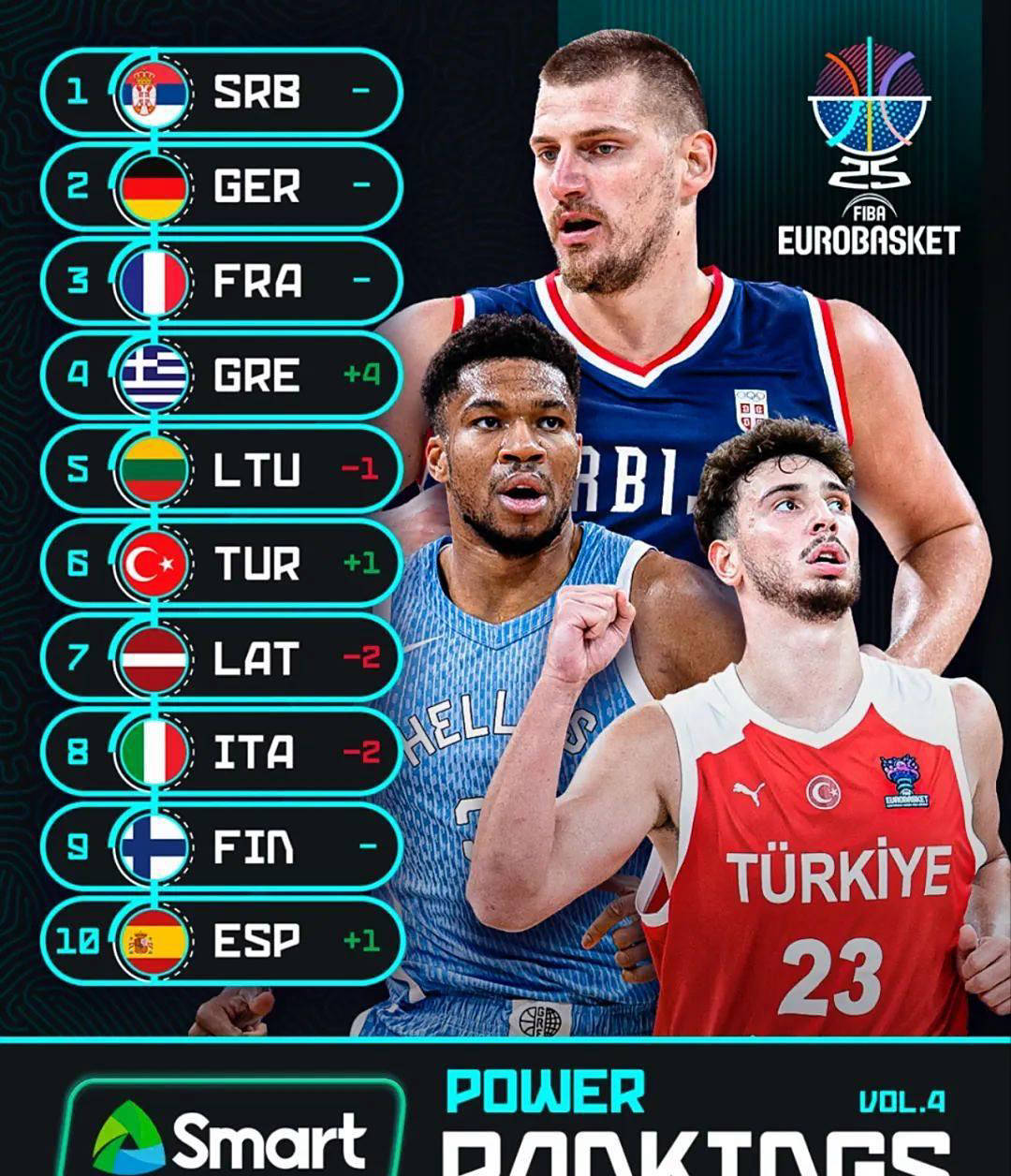 另外,希腊队位列战力榜第四,尽管在友谊赛中以15分不敌法国,但他们的后卫线实力依旧不容小觑。上一届欧洲杯,希腊在1/4决赛被德国淘汰,而当时字母哥成为得分王,表现亮眼。