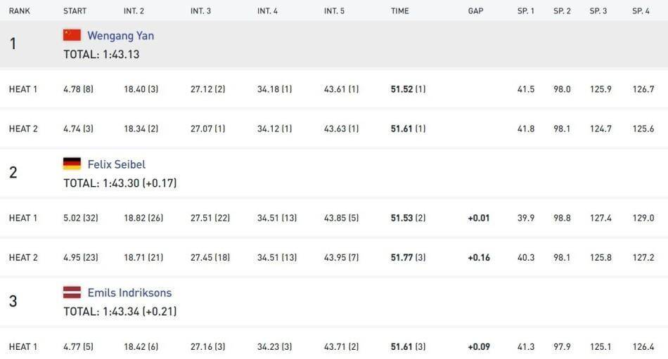 正是这种肉眼根本无法分辨的优势,成为了整场比赛的转折点。 第二轮滑行,闫文港再次飙出51.61秒的单轮最快成绩,最终以总成绩1分43秒13,领先德国人塞贝尔0.17秒夺金。 0.17秒,听起来不长,在钢架雪车这个追求极致速度的项目里,已经算得上是一场“大胜”。