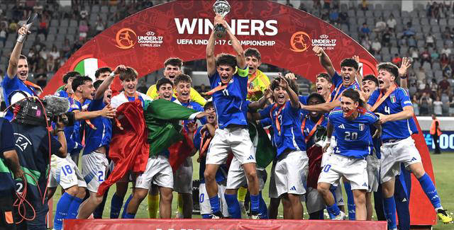 根据欧足联官网消息,这标志着意大利首次获得U17欧洲杯冠军,结束了长达42年的等待。赛后的颁奖仪式上,全队都欢欣鼓舞地庆祝着他们的冠军荣耀。