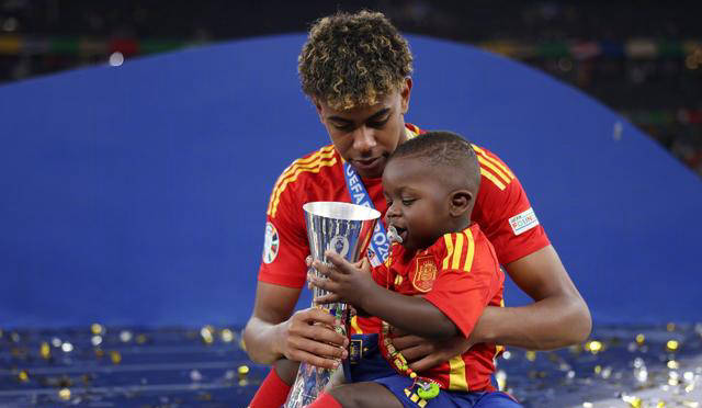 夺冠后,亚马尔与母亲和小弟弟一同留下了珍贵的合影。这个小家伙或许也会继承兄长的足球天赋,令人对他的未来充满期待,甚至有网友调侃说:“快去找梅西帮忙开光吧!”