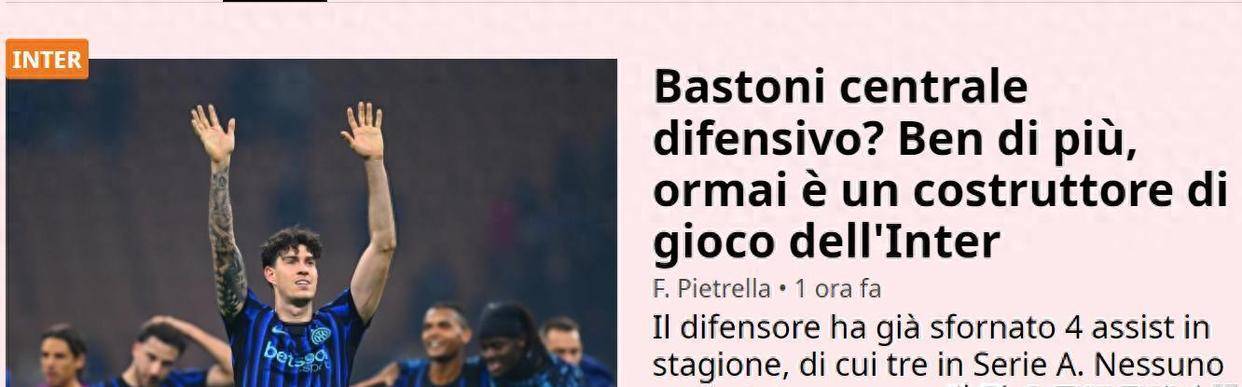 《米兰体育报》近期发表了一篇题为“巴斯托尼是个中卫吗? ”的评论文章,指出了这一反常现象。 在齐沃的战术体系下,巴斯托尼的比赛职责发生了显著变化。
