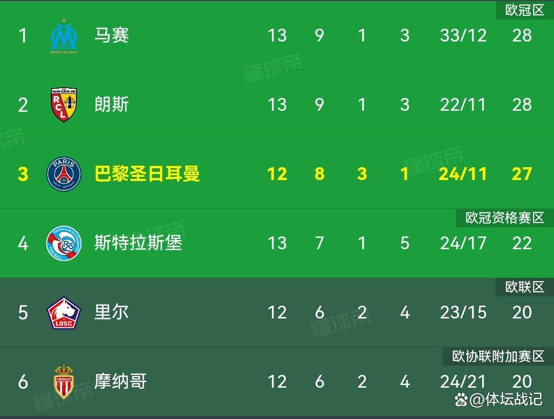 然而,在巴黎圣日耳曼夺回榜首之前,法甲积分榜的榜首位置在这一夜经历了两次易主。率先完成比赛的马赛客场5比1狂扫尼斯,一度登上榜首,而格林伍德在那场比赛中上演帽子戏法,以11粒进球4次助攻的亮眼数据领跑射手榜。