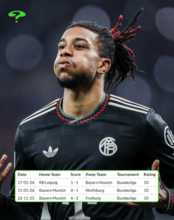 自加盟拜仁以来,奥利塞在战术体系中的地位不断上升。他不仅是边路爆点,更是进攻推进与创造机会的重要枢纽。在高强度对抗下依旧能保持出球质量与决策效率,是其评分持续走高的重要原因。