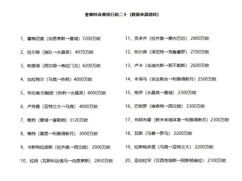 至于不少球迷关注的曼联,虽然梅努和齐尔克泽的离队一度成为焦点,但最终他们只是三进三出,科利尔、惠特利和阿玛斯三名小将结束租借回归后,又被立即租借到其他球队,没有任何实质性的收获。曼联最大的收获或许是“最已阵”,年轻球员梅努重新成为球队的主力,并努力争取得到主教练图赫尔的认可,以便能够参加世界杯。