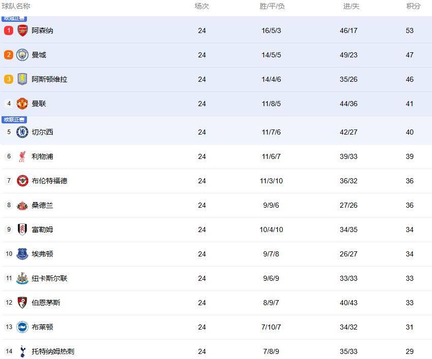 竞争最为激烈的当属英超联赛。领头羊阿森纳队在客场以4球零封利兹联,进一步扩大了领先优势。而排名第二的曼城队则在主场与热刺队战成2-2平,痛失两分,与阿森纳的差距被拉大到6分。尽管联赛还剩14轮,但曼城本赛季的状态明显不如阿森纳稳定,想要实现反超,除非阿森纳遭遇连续失利,同时曼城自身保持超水平发挥。此前一度表现强势的阿斯顿维拉队,在被阿森纳终结连胜势头后,本轮又在主场0-1不敌布伦特福德,目前以1分之差落后于曼城,排名第三。传统豪门曼联队正处于复苏的上升期,本轮比赛他们在补时阶段被富勒姆队扳平,但他们迅速做出回应,最终以3-2绝杀对手。自从卡里克执教以来,曼联在联赛中已经取得三连胜,其中包括击败阿森纳和曼城这两大劲敌的精彩表现。凭借这一波连胜,曼联目前积41分,落后阿斯顿维拉5分,排名第四。想要保住欧冠席位,他们还需要保持稳定的发挥。利物浦队在赛季初经历了一段低迷期后,目前在联赛和欧冠赛场上都呈现出明显的触底反弹之势。本轮比赛,他们以4-1大胜实力强劲的纽卡斯尔联队,积分达到39分,排名第六。切尔西队则以3-2险胜西汉姆联队,积分达到40分,紧追曼联,位居第五。值得一提的是,英超第六名到第十三名之间的差距非常小,一两场比赛的胜负就可能导致排名发生翻天覆地的变化。每支球队都具备将强队拉下马的实力和气势,这也是英超球队在欧冠赛场上表现强势的重要因素之一。